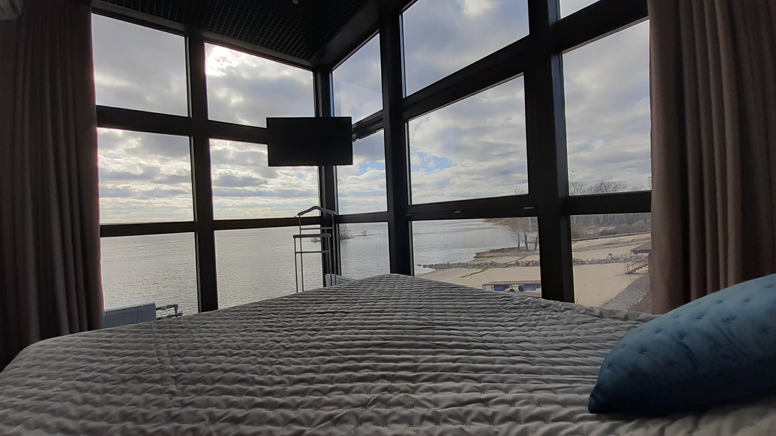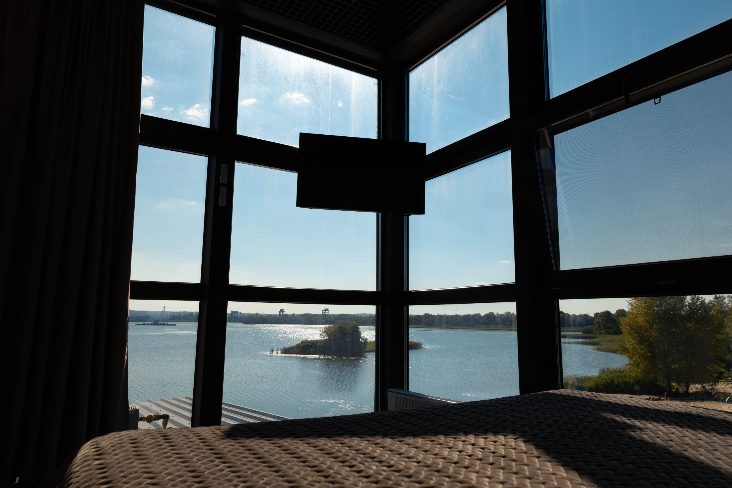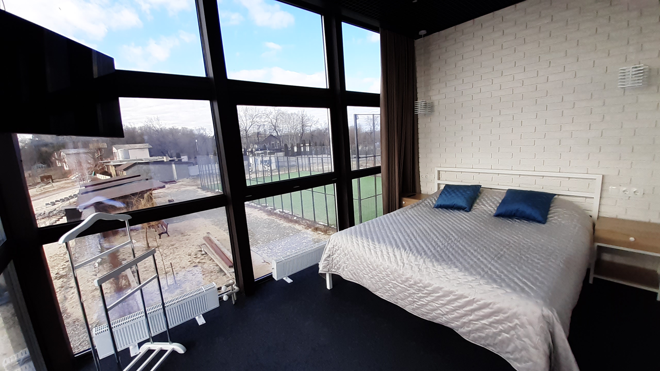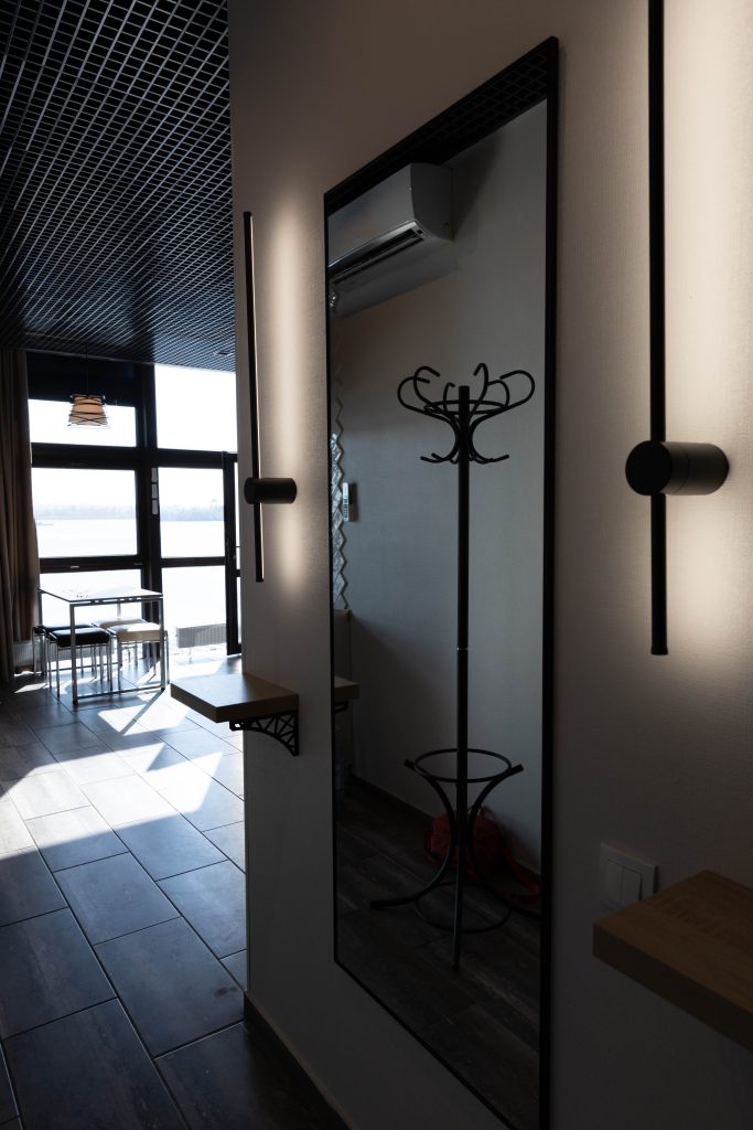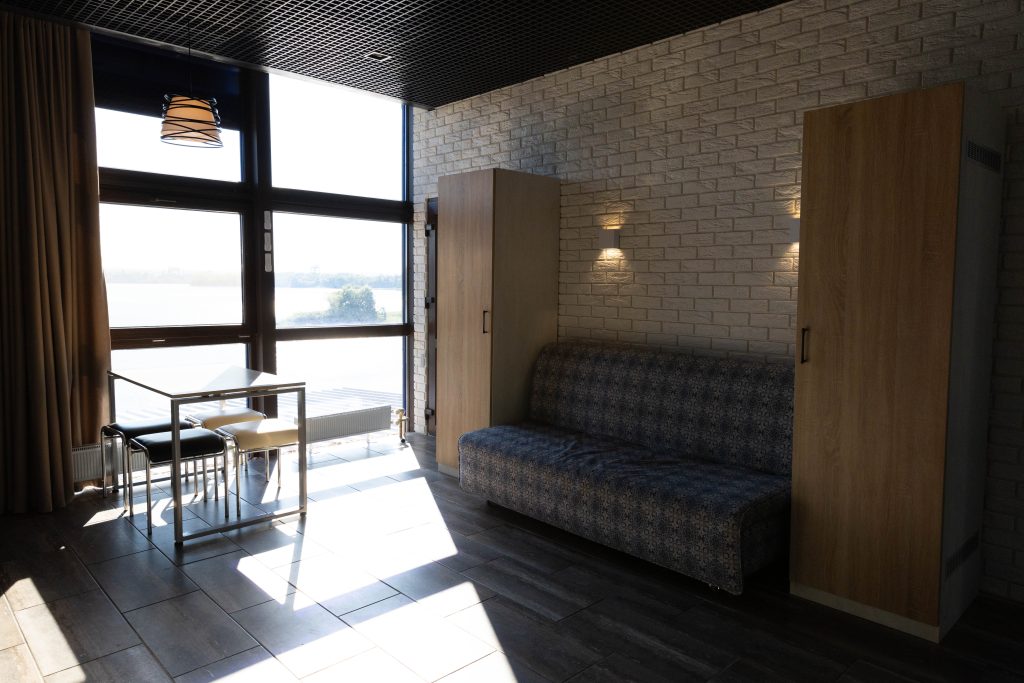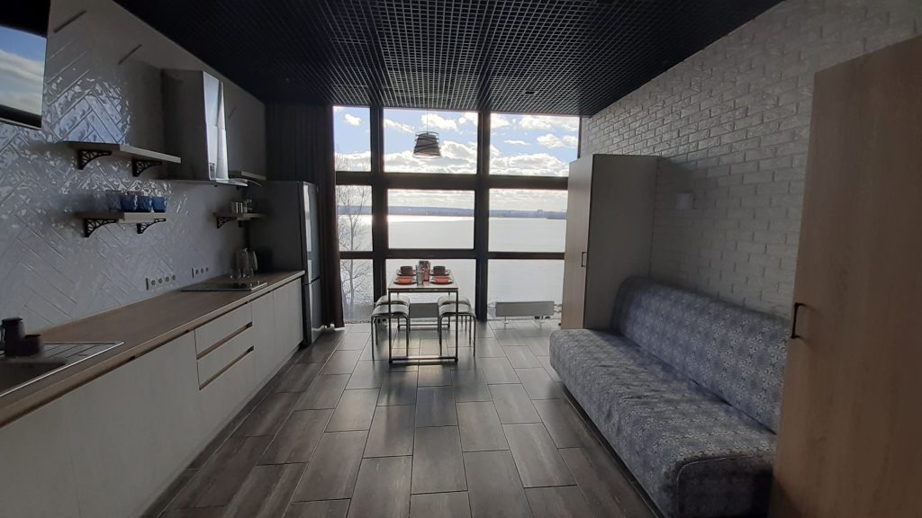 Номер 2-місний (з можливістю підселення 2х дорослих та 2х дітей) розташований на другому поверсі. В номері велике 2-х спальне ліжко, розкладний диван, двоярусне ліжко. В номері є кондиціонер, телевізор, холодильник, електрочайник, міні-кухня, санвузол. Номер має панорамні вікна з видом на річку Дніпро та територію бази відпочинку. Поруч альтанка+мангал (входять у вартість, дрова у вартість не входять).