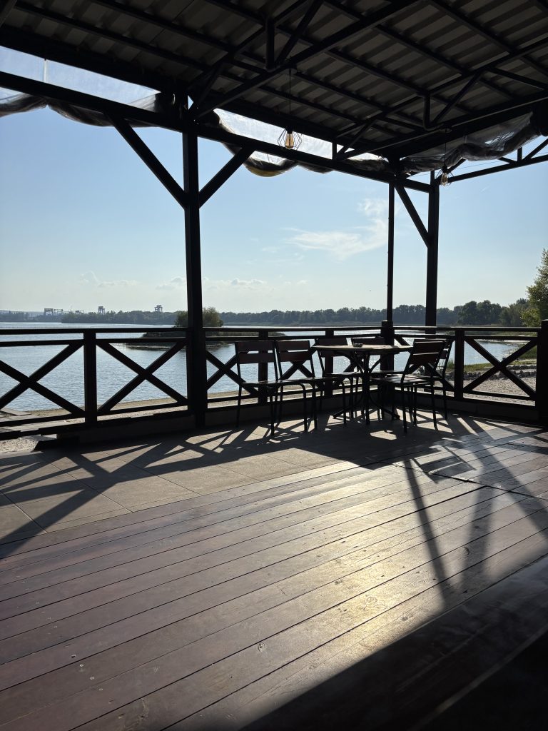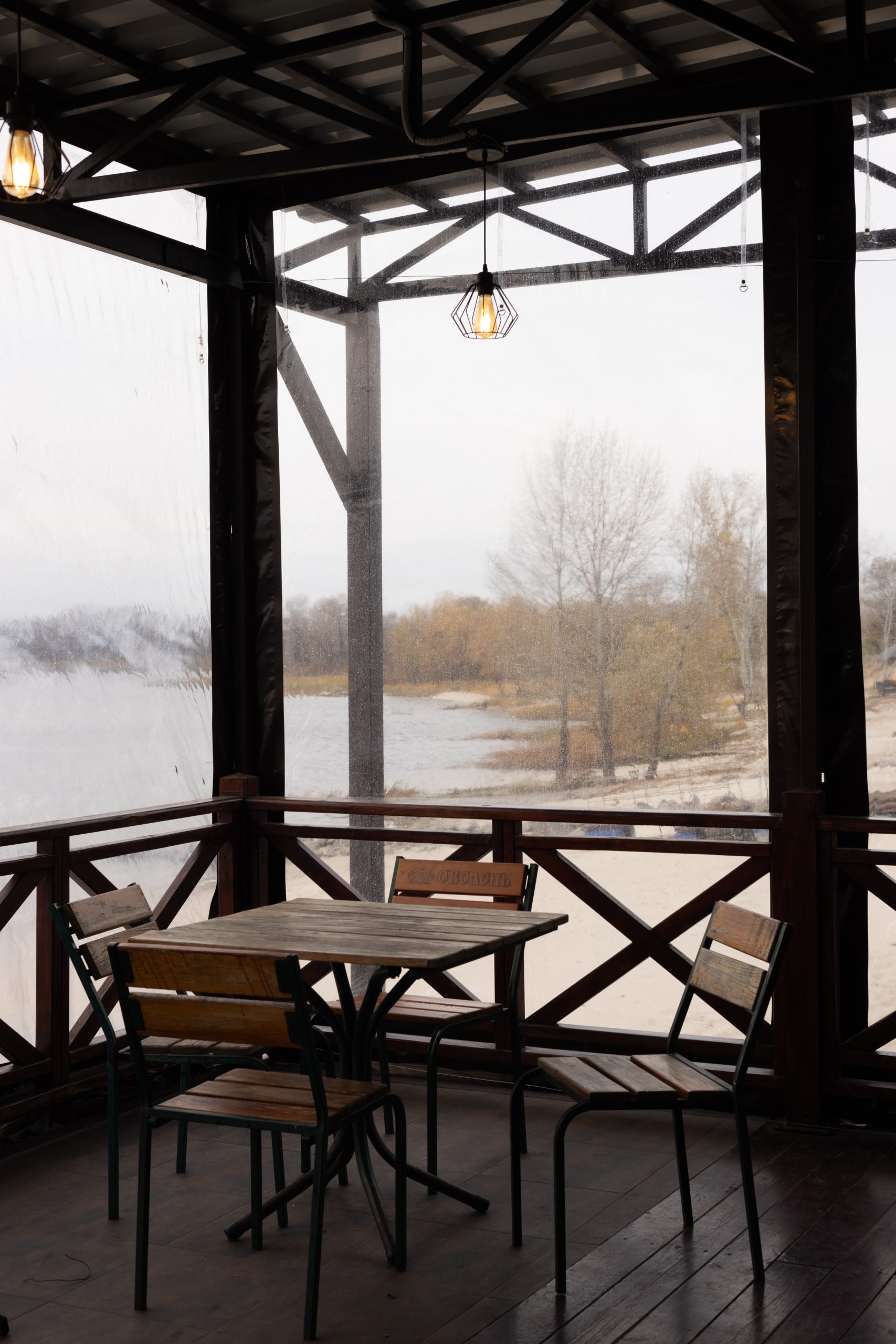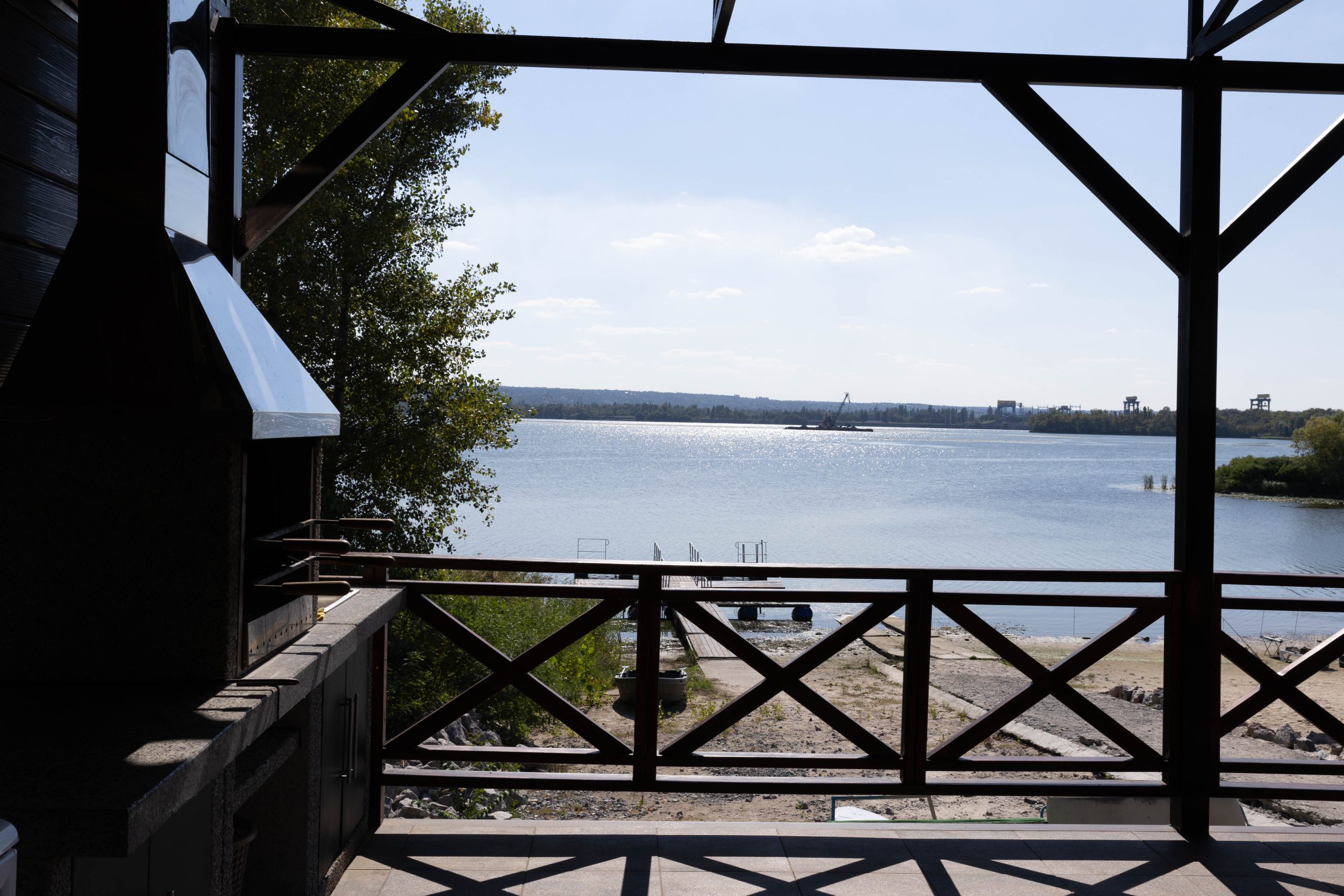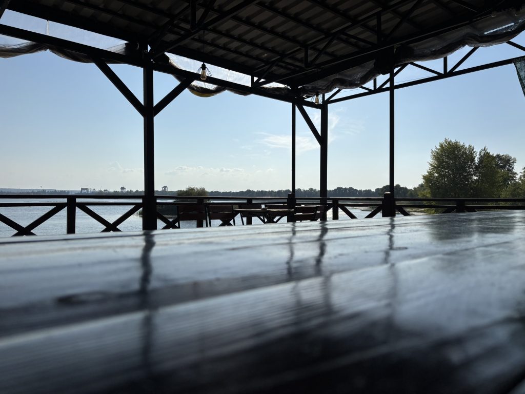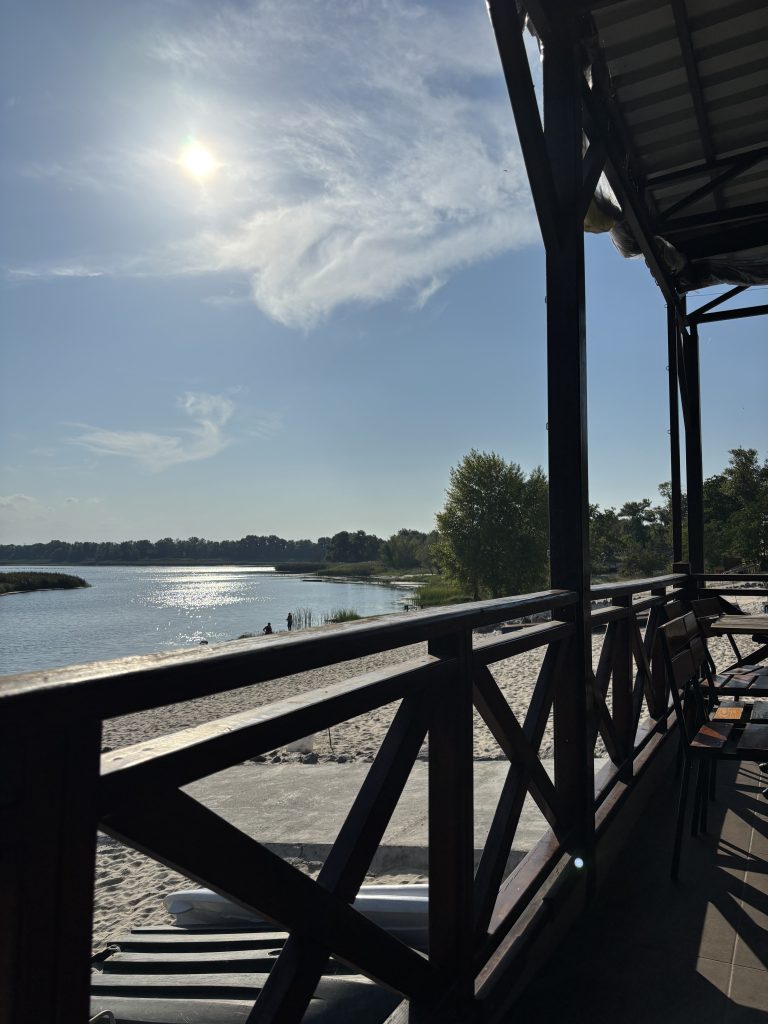 Велика 12-місна Тераса на березі (з можливістю відпочинку до 20 гостей) з чудовим видом на широку річку Дніпро. Облаштована всім необхідним для комфортного вашого відпочинку. Вода, розетки, освітлення, великий дерев’яний стіл, мангал (дрова у вартість не входять). В холодну, вітряну погоду з усіх сторін зачиняється м’якими вікнами.